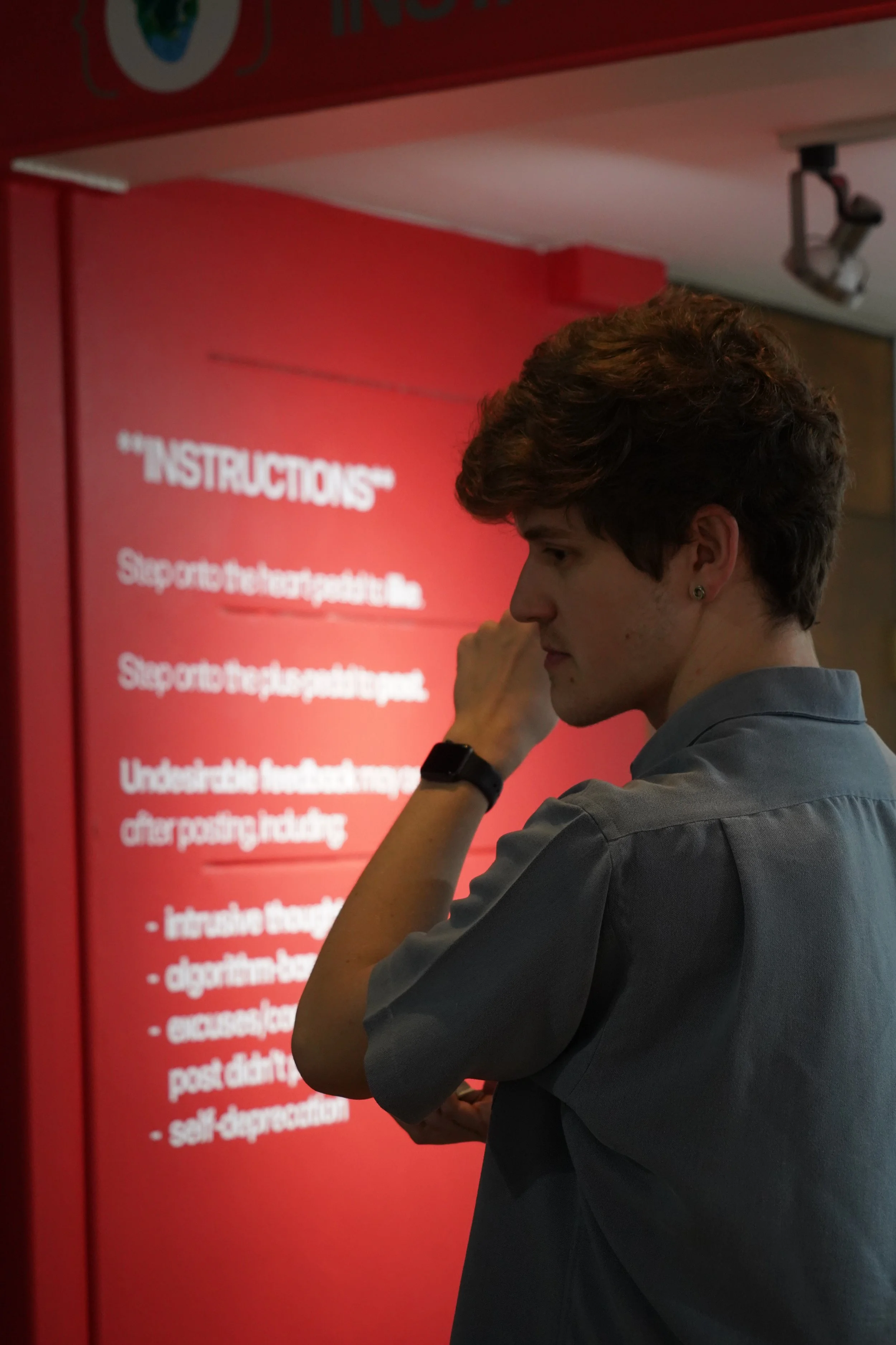 For this exhibit, I wanted to emulate my process of thinking while using Instagram. Using two foot-pedals so that viewers could navigate the “posts”, I supplied my own narrative after they chose to post.